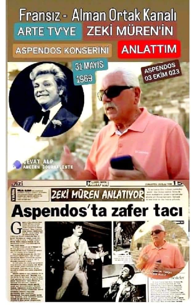 17- Fransız - Alman ortak kanalı ARTE TV'de yakın tarihte yayınlanan, aslı Antalyalı olan Zeki Müreni'n 31 Mayıs 1969 tarihinde tarihi Aspendos'ta verdiği unutulmaz konserini, (O muhteşem geceyi bizzat yaşamış birisi olarak) Aspendos'ta geçen yıl 3 Ekim'de yaklaşık 2 saatlik çekimlerde dile getiren de, Antalya'nın hafızası olarak tanımlanan Cevat Alp'ten başkası değil elbet.