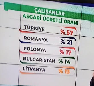 Ülkemizde çalışanların %57 sinin asgarî ücretle çalışan olduğu yapılan araştırmalar ve uzman (Emin Çapa) açıklaması ile ortadadır.