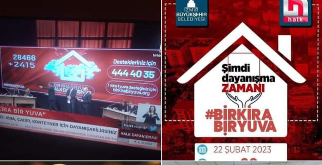 İzmir Büyükşehir Belediyesi’nin (İzBB) Halk TV'deki ‘Bir Kira Bir Yuva’ kampanyasına Türkiye , Amerika, Kanada ve Avrupa 'dan çeşitli ülkeler desteklerini esirgemediler.
