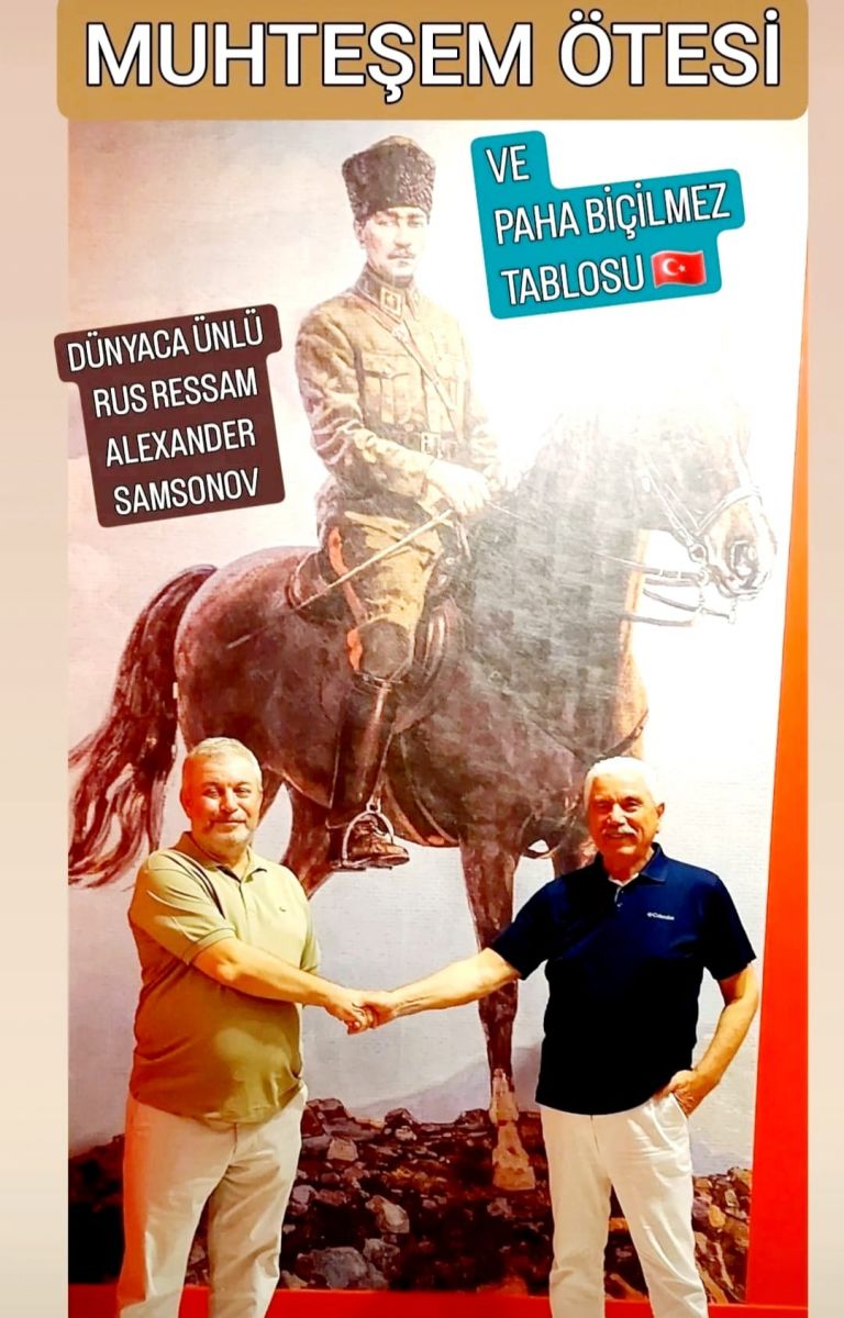 Bir birinden güzel, muhteşem ötesi, her biri paha biçilmez sanat eseri Atatürk tabloları arasında dolaşırken, Bu tarihi sergiye imzasını atan Yüzyılın Ressamı Rus Sanatçı Alexander SAMSONOV ile tanışma şansı buldum...