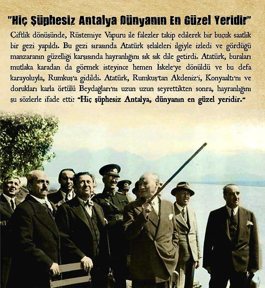 O fotoğraf, Büyük Önderimizin 'Hiç Şüphe Yok ki, Antalya Dünyanın En Güzel Yeridir" sözünü söylediği anın fotoğrafıydı...